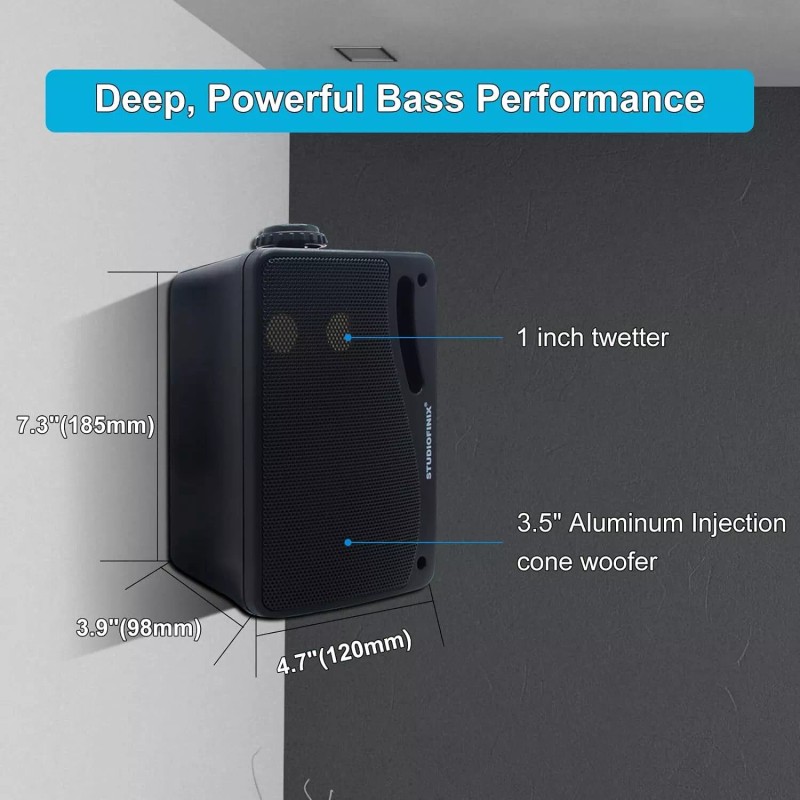 3.5” 3-way outdoor mini box speaker, Bass Reflex Vent for Added Bass Response