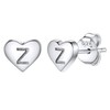 Studs Earrings for Women, S925 Sterling Silver Heart Initial Letter Z Small Tiny Earrings for Girls Ladies Mum Daughter Sisters Friends Lover Hypoallergenic Silver Jewellery with Gift Box
