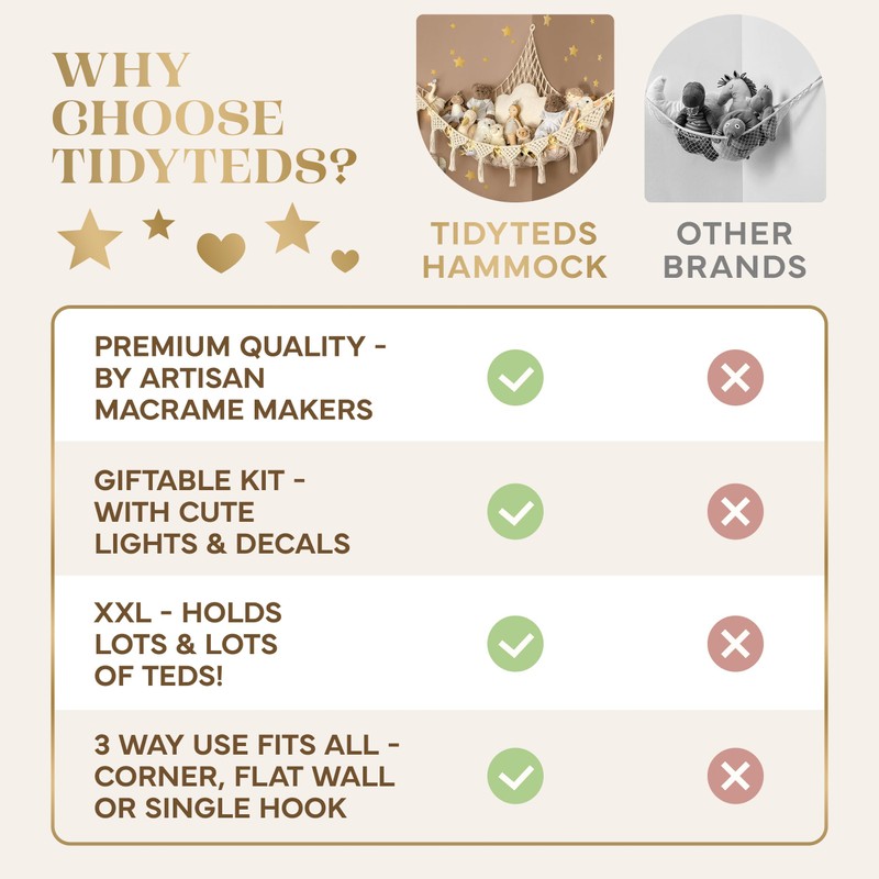 TIDYTEDS Stuffed Animal Hammock Corner | Sturdy Handcrafted Stuffed Animal Net | 4mm Double Macrame Cord Stuffed Animal Holder | Natural 100% Cotton Plushie Net | Toy Hammock w/LED Light (Ice Cream)
