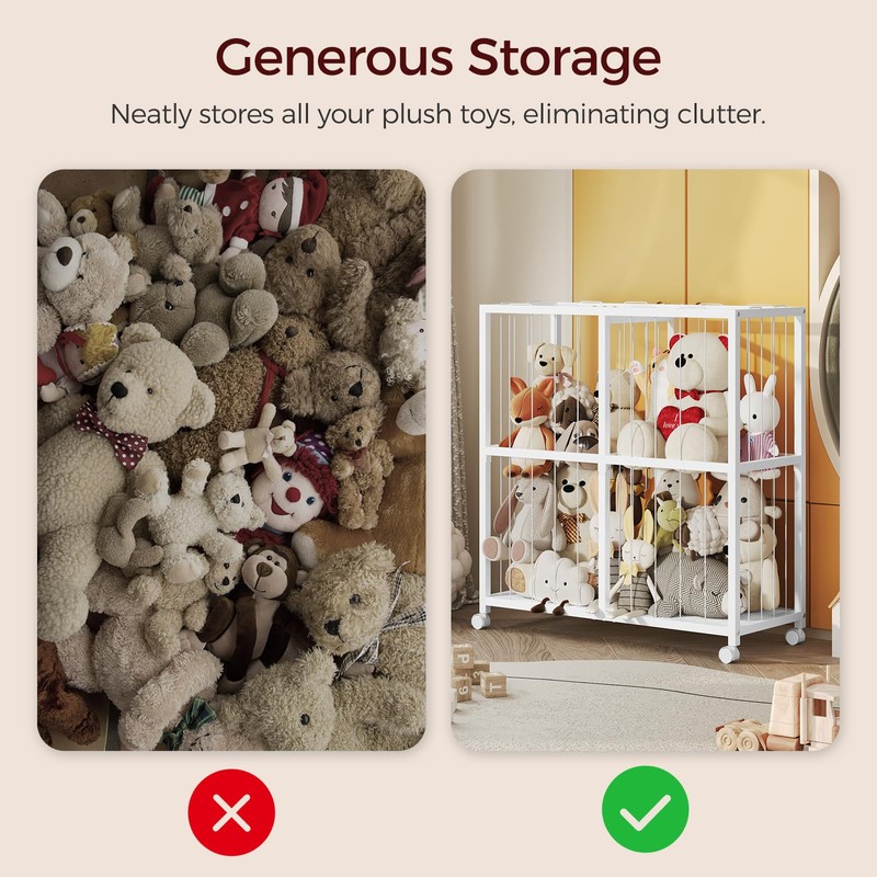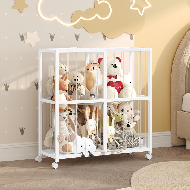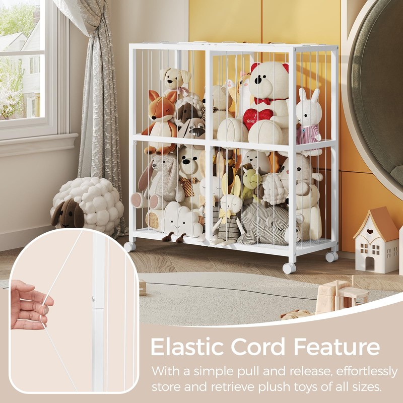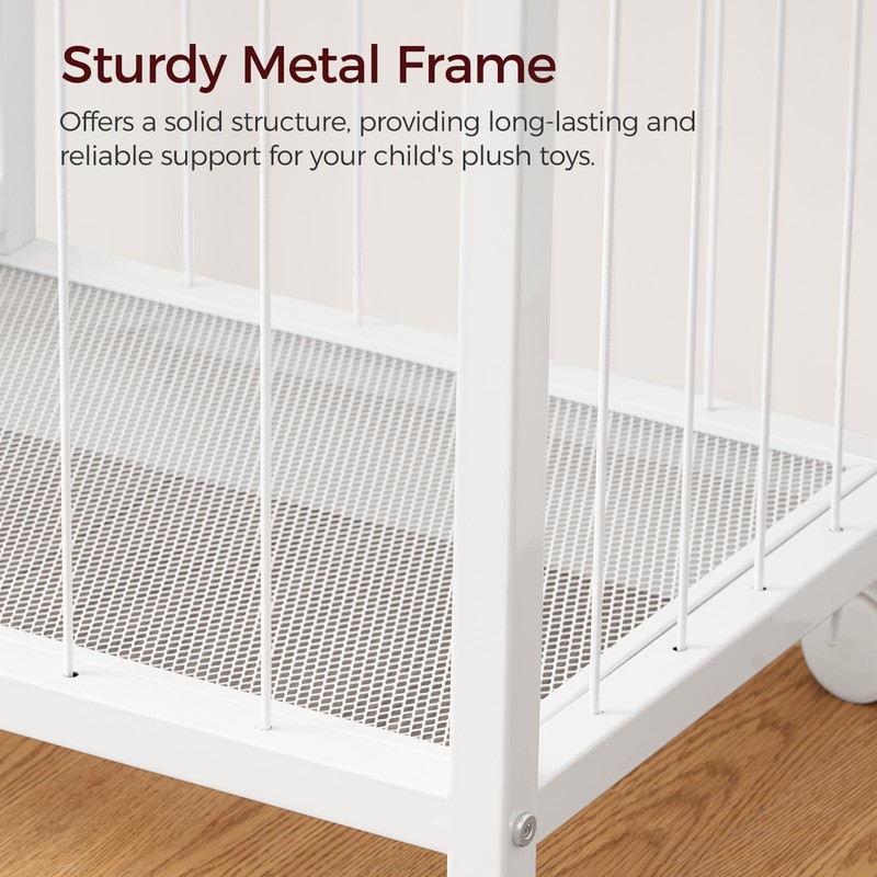 MAHANCRIS Stuffed Animal Storage, Double-Row Zoo Stuffed Animal Net with Wheels, Movable Plush Toy Holder and Toy Storage Organizer, Space Saving for Kids Room, Playroom, Nursery, White SCBW1701