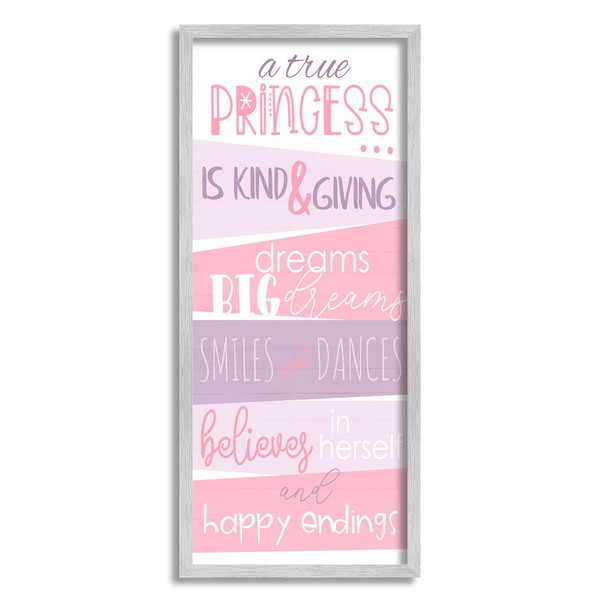 Stupell Industries A True Princess Motivational List Pink Purple Phrases, Designed by Anna Quach Gray Framed Wall Art, 13 x 30