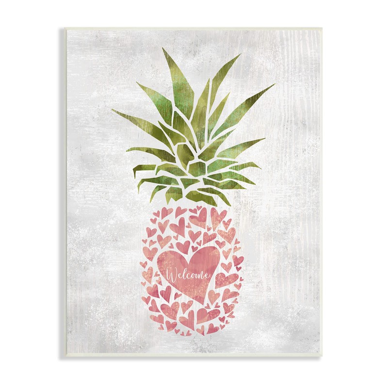 Stupell Industries Abstract Heart Shape Pineapple Welcome Greeting Wall Plaque, 10 x 15, Pink