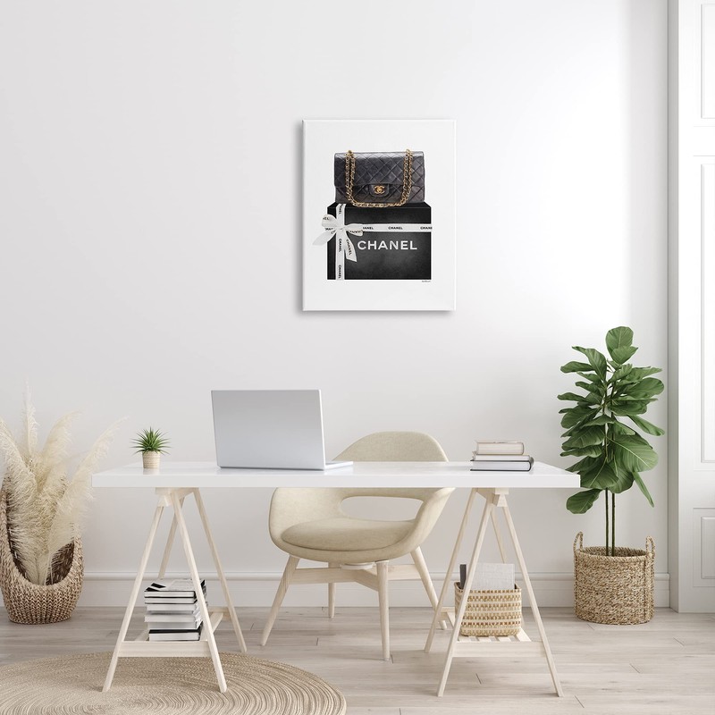 Stupell Industries Black Quilted Purse on Bold Glam Bow Box, Designed by Amanda Greenwood Canvas Wall Art, 24 x 30