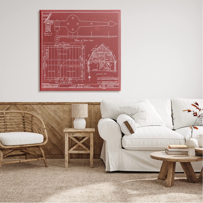 Stupell Industries Detailed Diagram Blueprint Old Barn Floor Plan, Design by Annie Warren