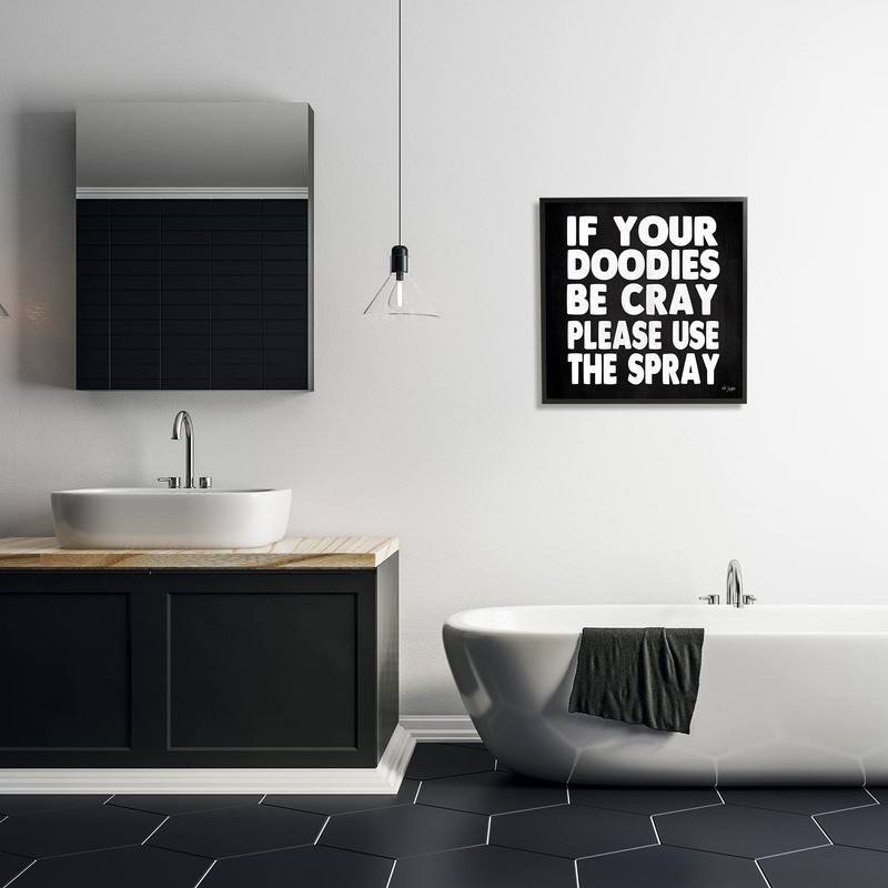 Stupell Industries Doodies Be Cray Use The Spray Bathroom Phrase, Designed by Jaxn BLVD. Black Framed Wall Art, 24 x 24, White