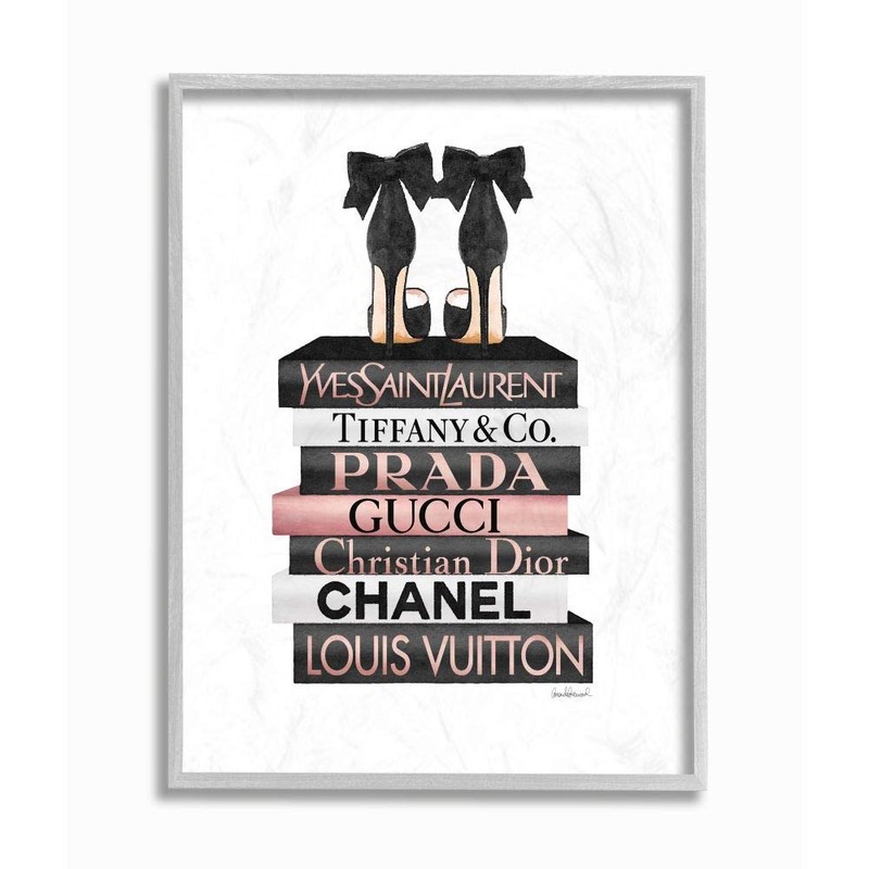 Stupell Industries Elegant Black Bow Heals on Glam Designer Bookstack Wall Art, 16x20, White
