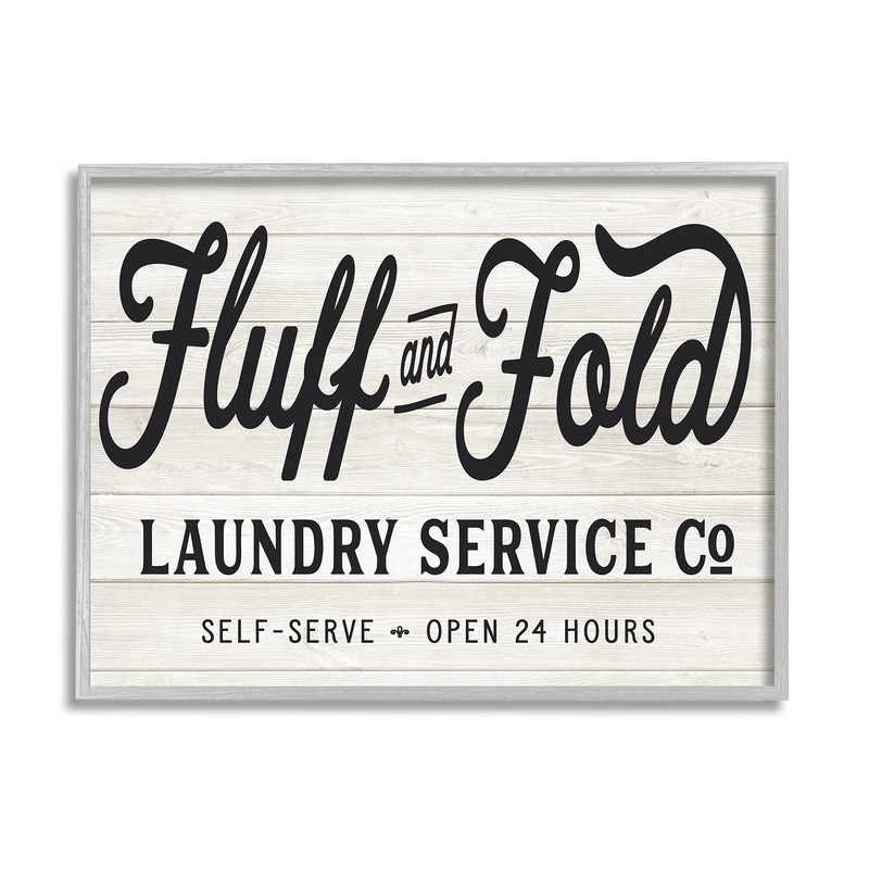 Stupell Industries Farmhouse Fluff and Fold Laundry Advertisement Rustic Pattern, Designed by Lettered and Lined Gray Framed Wall Art, 24 x 30, Off- White