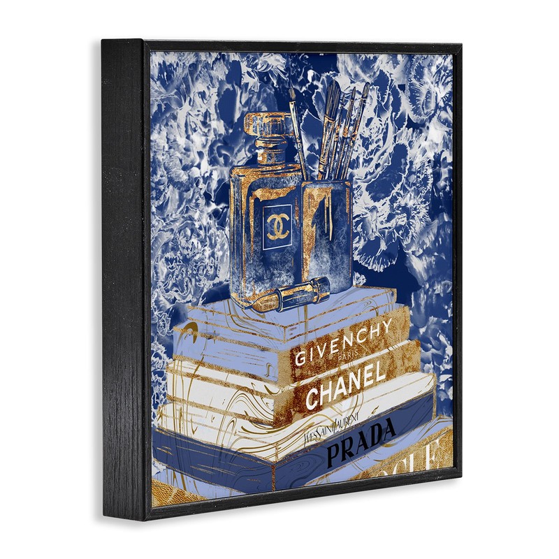 Stupell Industries Fashion Book Pile Glam Designer Accessories Blue Gold, Designed by Ziwei Li Wall Art, 12 x 12, Black Framed