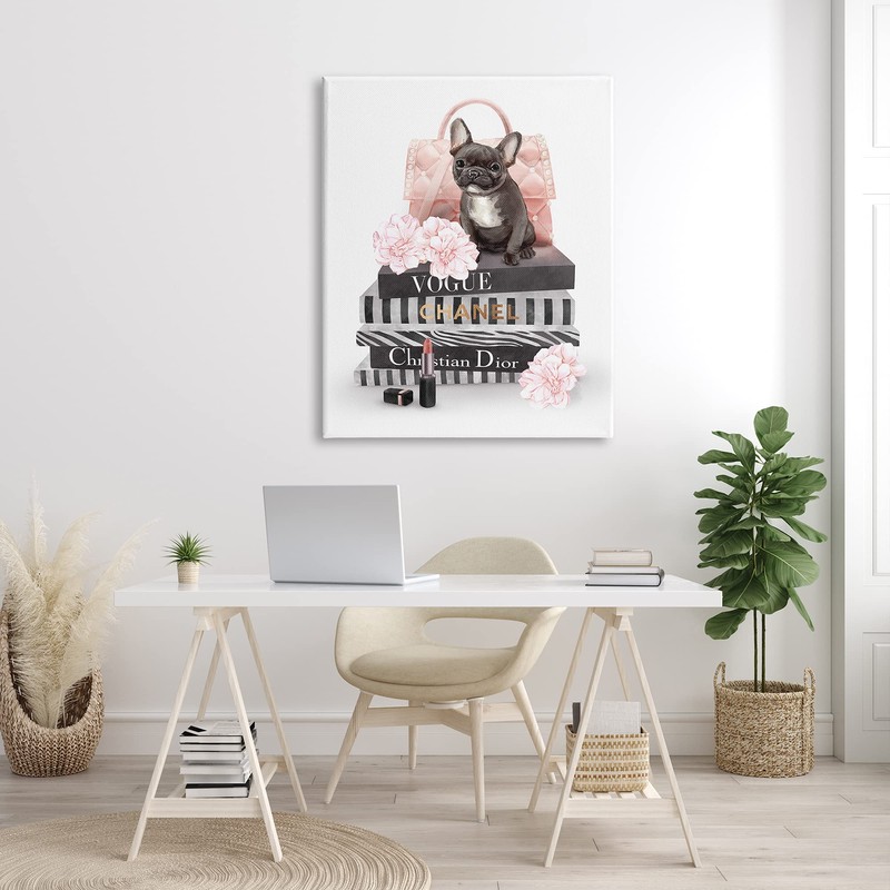 Stupell Industries French Bulldog Pink Peonies Glam Fashion Bookstack, Designed by Ziwei Li Canvas Wall Art, 36 x 48, Multi-Color