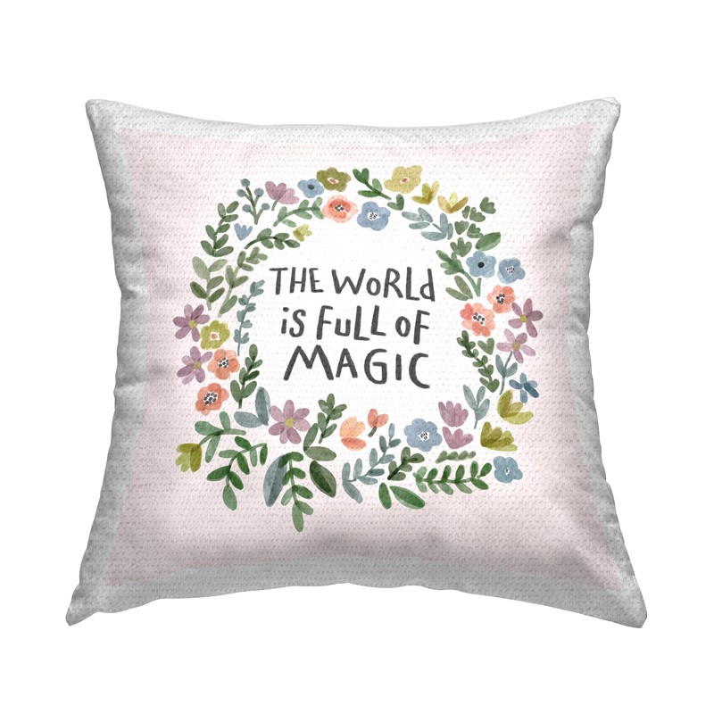Stupell Industries Full of Magic Uplifting Flower Wreath Quote Outdoor Printed Pillow, 18 x 18, Multi-Color