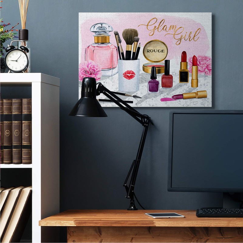 Stupell Industries Glam Girl Phrase with Fashion Cosmetic Accessories, Design by Grace Popp Canvas Wall Art, 30 x 40, Pink
