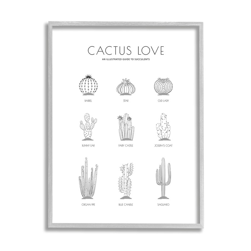 Stupell Industries Illustrated Guide to Succulents Minimal Modern Cactus Plant, Designed by Martina Pavlova Gray Framed Wall Art, 24 x 30, Grey