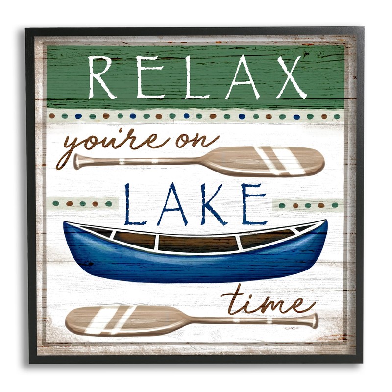 Stupell Industries Lake Time Rustic Canoe Paddle Phrase Framed Wall Art, Design by Elizabeth Tyndall