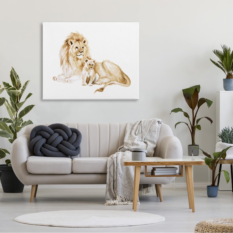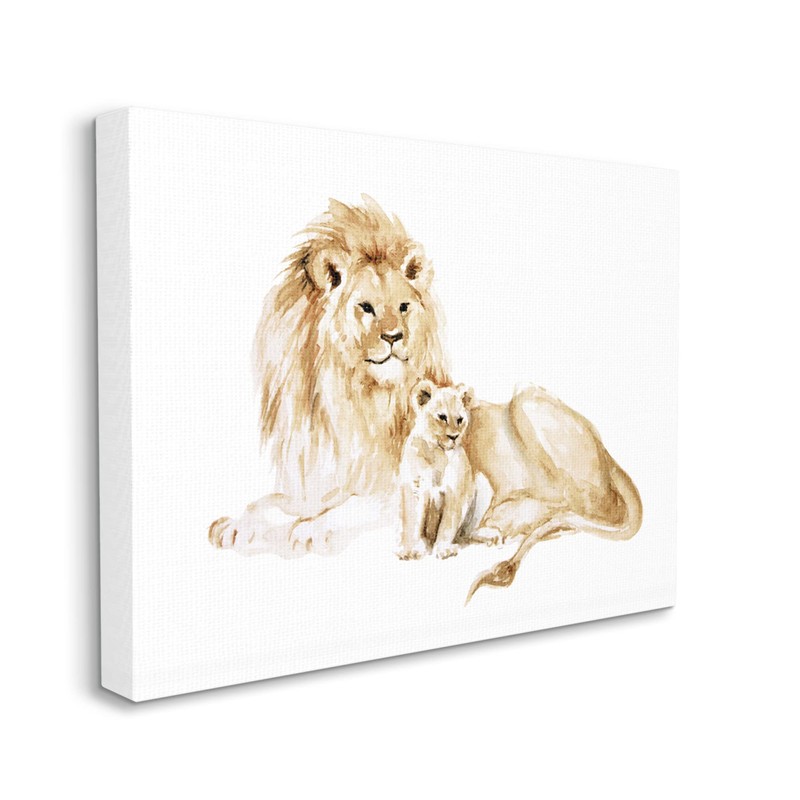 Stupell Industries Lion and Cub Watercolor Painting Nursery Safari Animal Canvas Wall Art, 48 x 36, Yellow