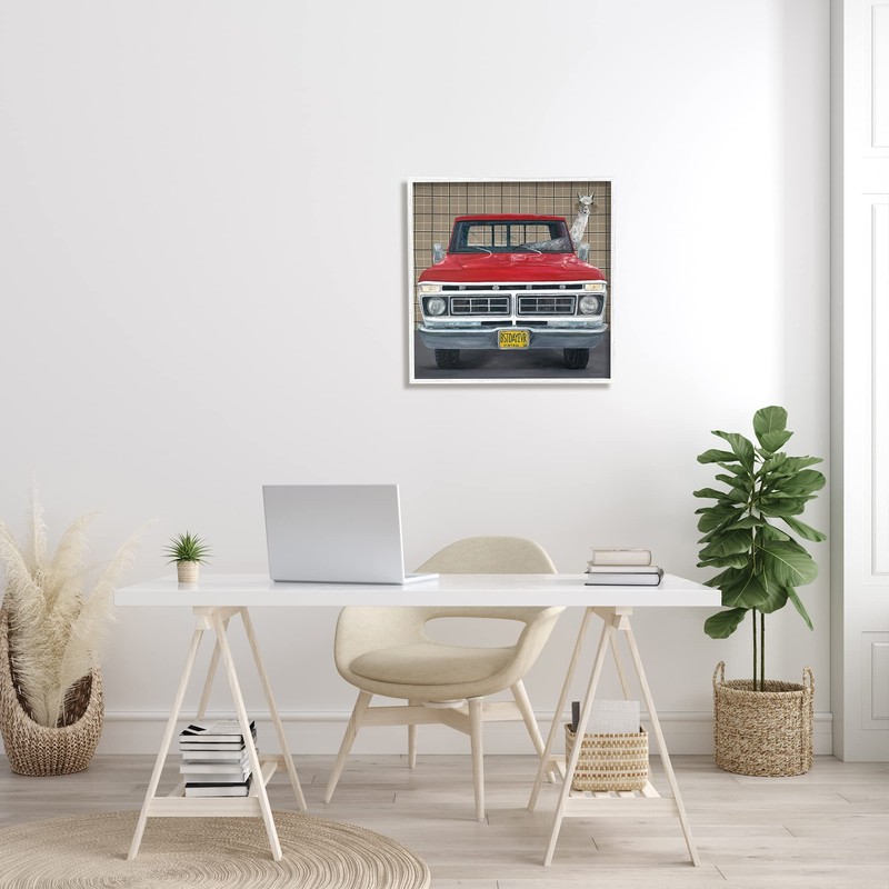 Stupell Industries Llama Aviator Sunglasses Red Truck Best Day Ever, Designed by Kamdon Kreations White Framed Wall Art, 24 x 24, Tan