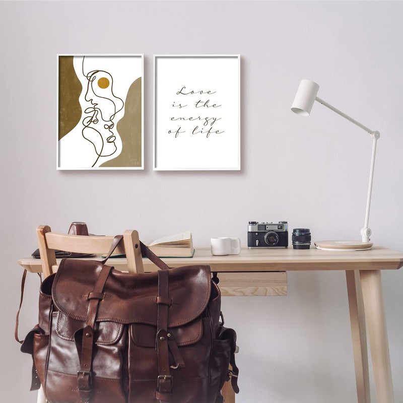 Stupell Industries Love is Energy Phrase Abstract Faces Couple Linework, Designed by Birch&Ink White Framed Wall Art, 2pc, Each 11 x 14, Brown