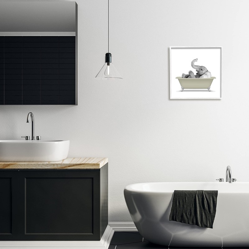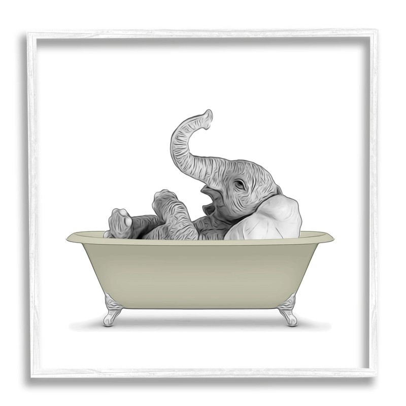 Stupell Industries Monochromatic Elephant Laying Bathtub Bathroom Illustration,Design by Annalisa Latella