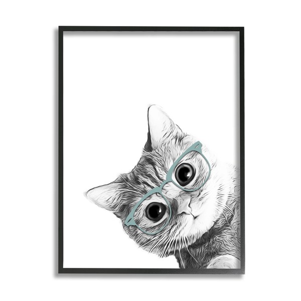 Stupell Industries Monochrome Cat Kitten Peeking Glasses Portrait, Design by Annalisa Latella