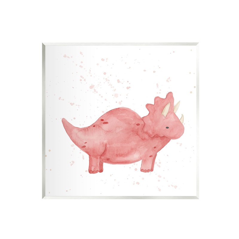 Stupell Industries Pink Triceratops Dinosaur Animal Wall Plaque Art, Design by Lucille Price, 12 x 12