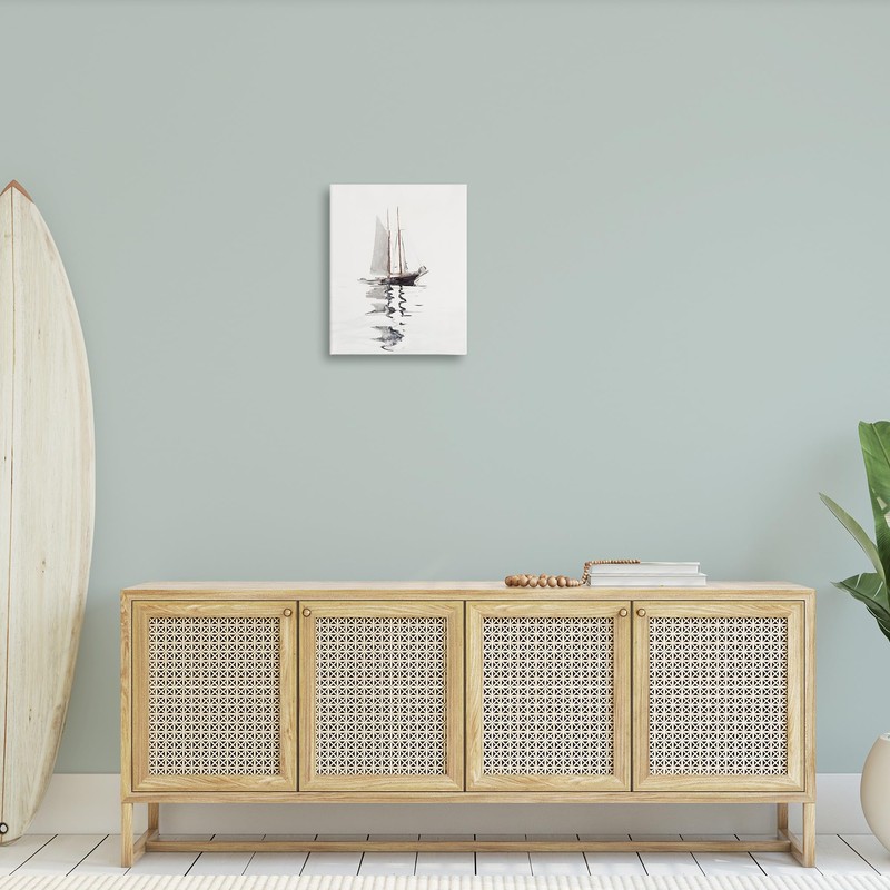 Stupell Industries Tranquil Sailboat Vessel Floating Lone Ocean Reflection, Design by Lettered and Lined
