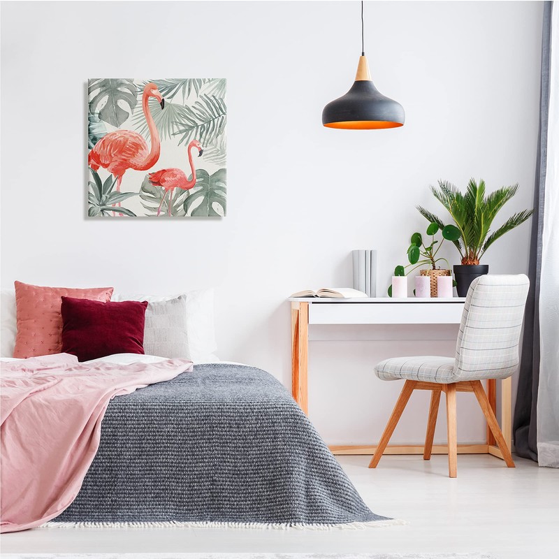 Stupell Industries Tropical Flamingo Family Pink Birds Monstera Palm Leaves, Design by Carson Lyons Canvas Wall Art, 24 x 24, Green