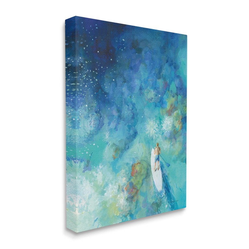 Stupell Industries Tropical Ocean Reef Paddle Board Male Surfer Blue Canvas Wall Art, 16 x 20