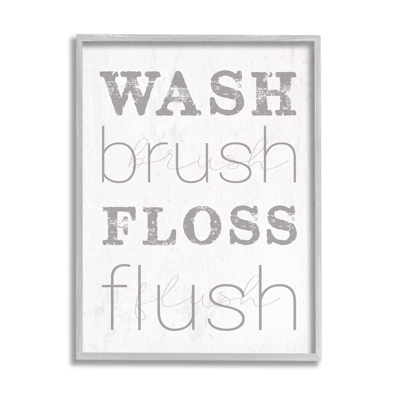 Stupell Industries Wash Brush Floss Flush Grey and White Distressed Rustic Look Typography, Design by Daphne Polselli Gray Framed Wall Art, 24 x 30