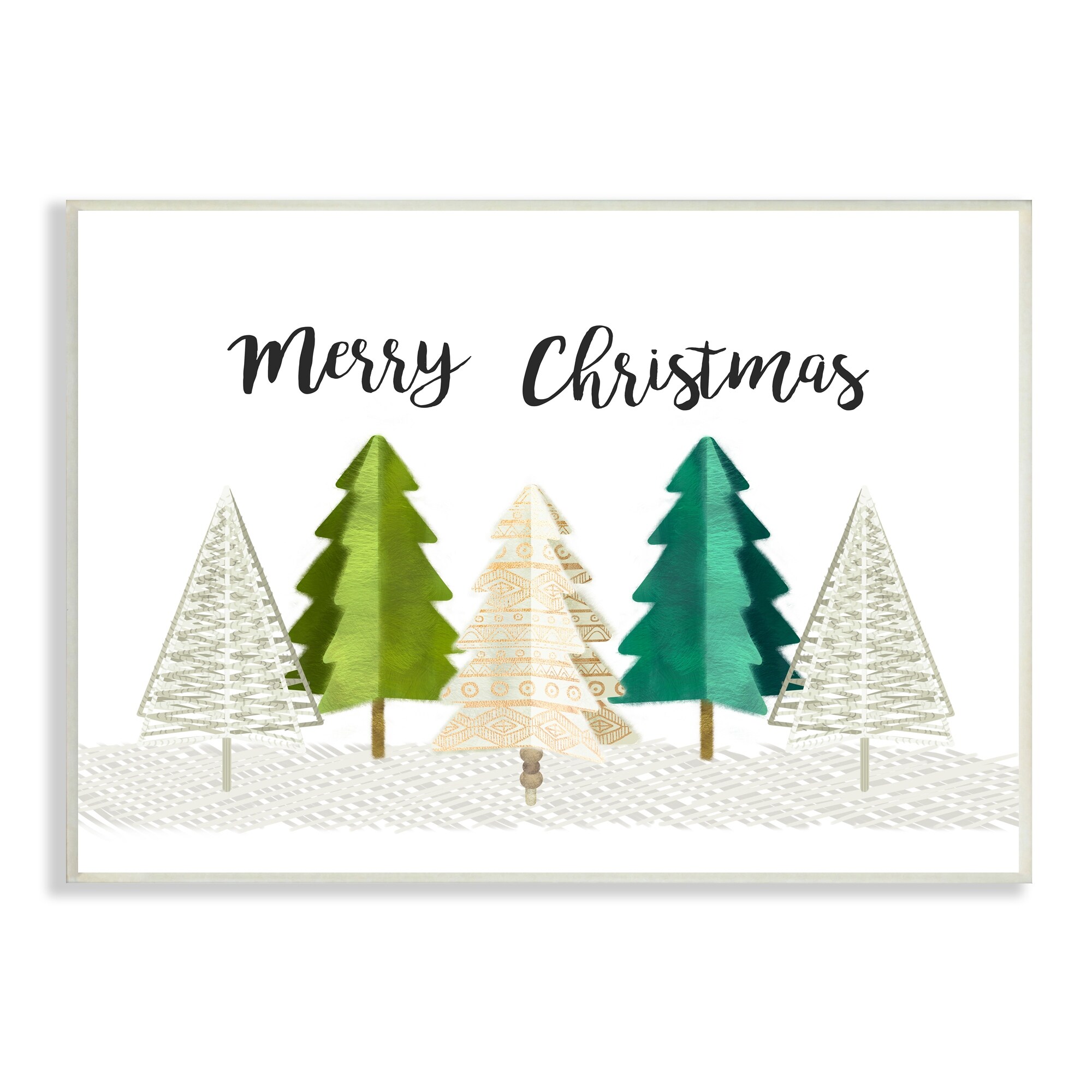Stupell Merry Christmas Greeting Modern Minimal Pine Trees Wood Wall Art
