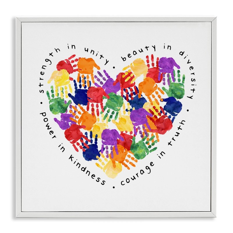 Stupell Strength In Unity Children's Rainbow Handprint Heart Framed Wall Art -