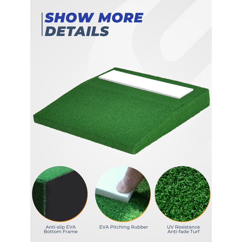 - Grass-like Feel: Feel like you're on the field, anywhere! Our EVA pitching mound mimics the sensation of real grass, providing a natural, non-slip surface even on concrete. Enjoy steady footing and perfect your pitch without the fear of slipping