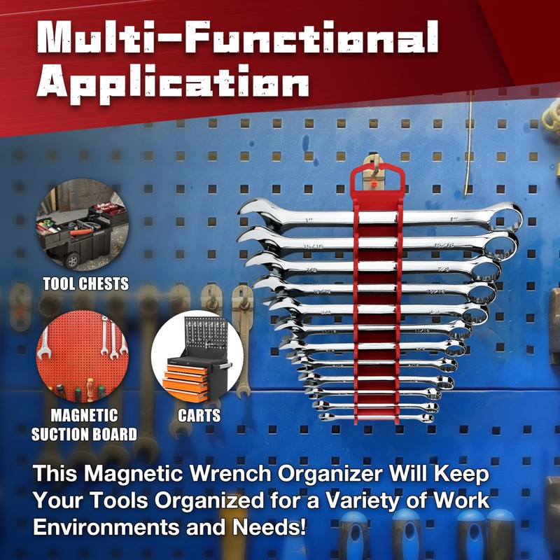 • 【Versatility】Whether it's a home garage, professional shop or industrial repair station, this magnetic wrench organizer will keep your tools organized for a variety of work environments and needs! Also available in red and black to distinguish between metric and SAE wrenches or various wrench types.
