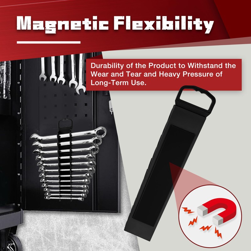 • 【Material】The magnetic wrench organizer is made of ABS plastic and thick magnets to ensure a strong hold while enhancing the sturdiness and durability of the product to withstand the wear and tear and heavy pressure of long-term use.