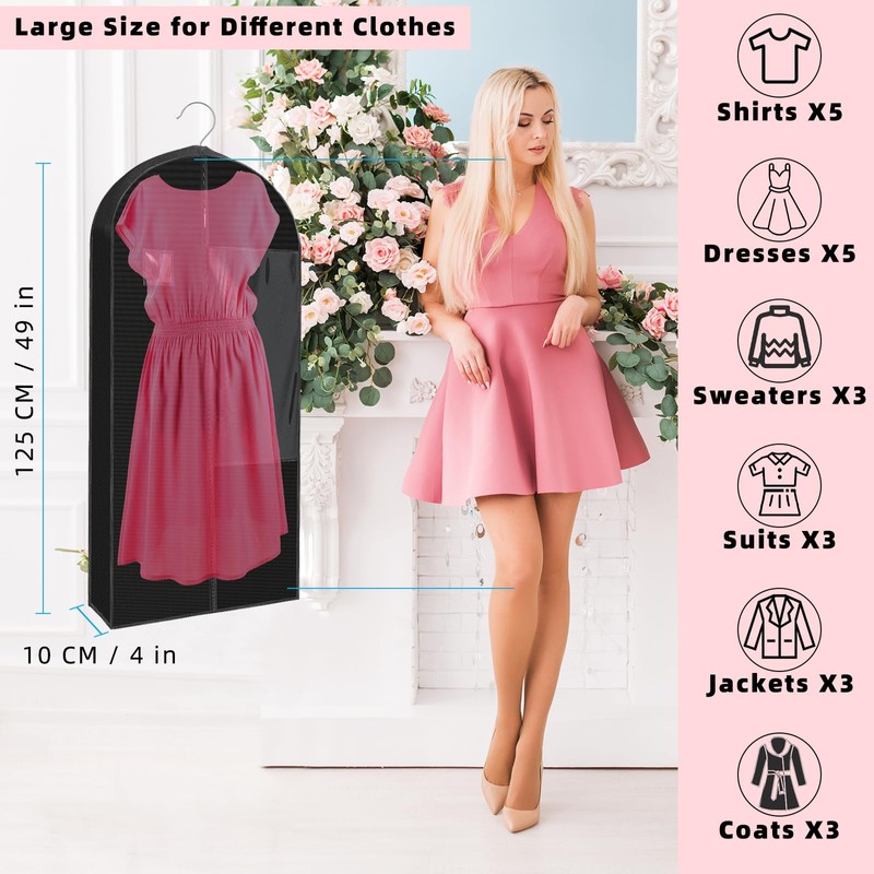 - 【Quality fabric】 : Black suit bag for storing suits and wardrobes. Made of lightweight, breathable non-woven material. As long as you cherish it, it will last and promises to protect your clothes at all times. Garment bags are lightweight and durable.