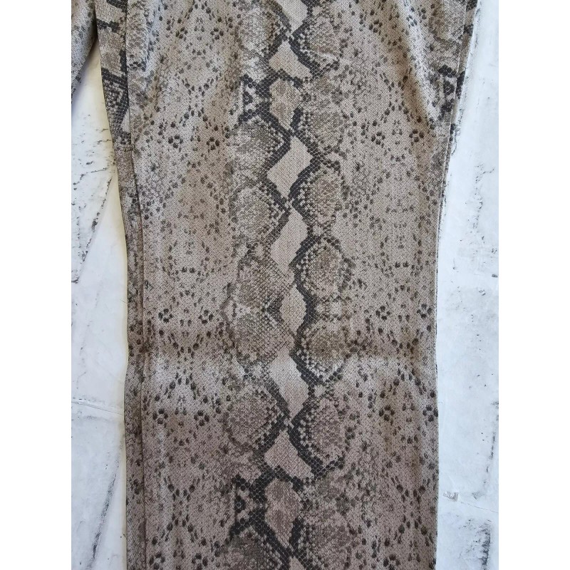 Colors may appear slightly lighter or darker due to settings on your device and lighting in the area you view the photos in. These pants are a brownish/oliveish snake patterned color.