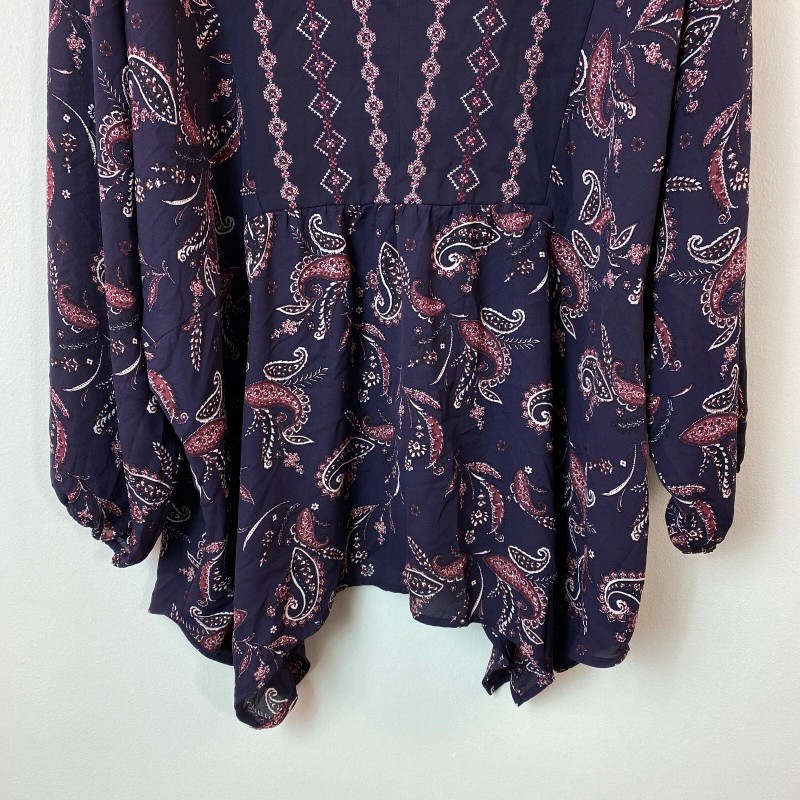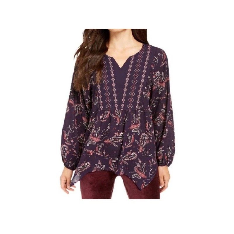 - Details: Relaxed fit; Split neckline; Paisley Printed; Handkerchief hem; peasant blouse