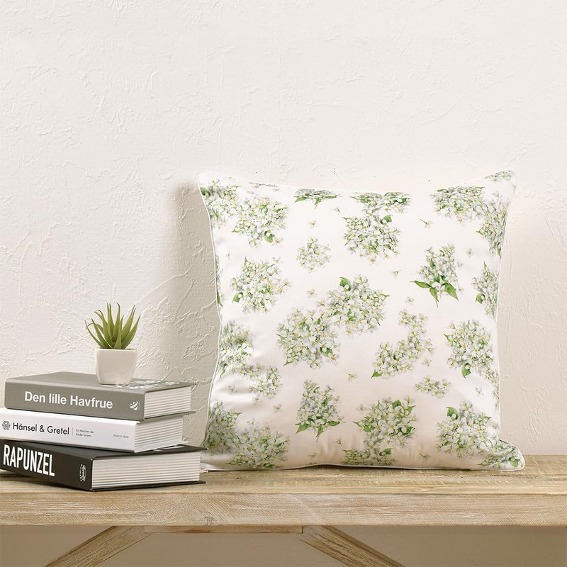 Style Decor W3504400 Cushion Cover 17.7 x 17.7 inches (45 x 45 cm), Scandinavian Fashionable, Cute, Set of 2, 100% Cotton, Floral, Plant, Jasmine, White