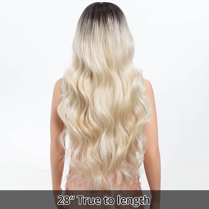 Style Icon Glueless Wigs HD Lace Front Wigs 28 Inch Long Synthetic Deep Wavy Wigs for Women Pre Plucked Curly Wigs with Middle Part Baby Hair (TTPG 6/613F/1001E)