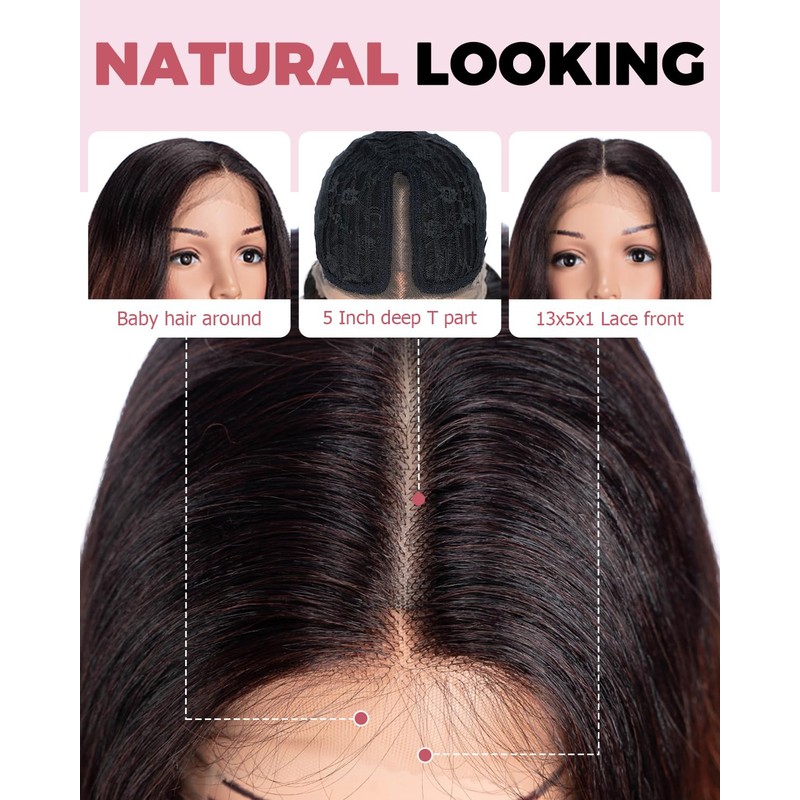 - Middle part lace wigs: 12.7 cm deep middle parting with flat lace and no bulkiness here. The lace is soft and a beautiful brown tone, adapts perfectly to the skin. Baby hair available, gives you the most natural and easy wearing experience.