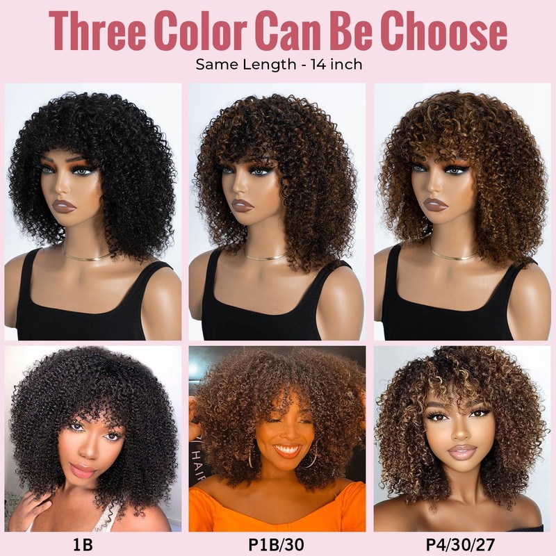 Wig Style: short kinky curly human hair wigs with bangs for women