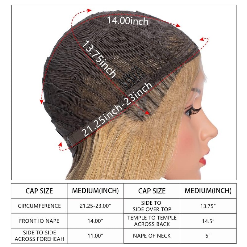 - Wig Cap: The wig cap circumference is about 22-23 inches. It's also designed with three security combs and two adjustable straps if in need to make any cap adjustment.