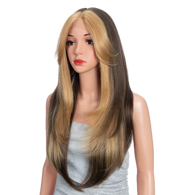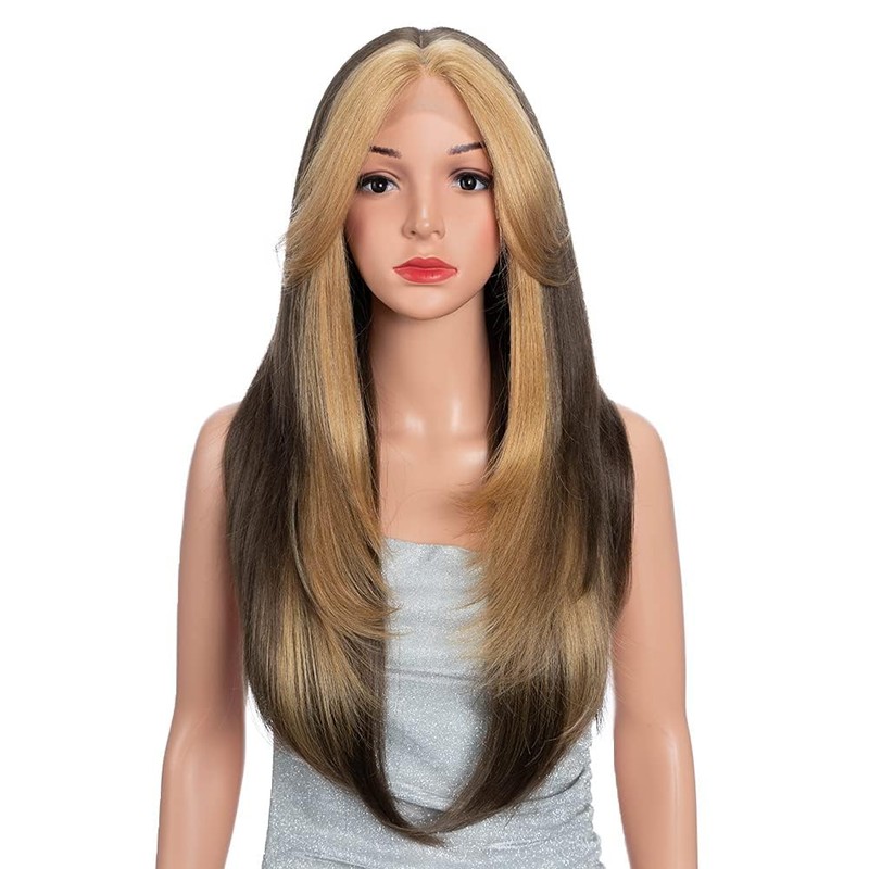 Style Icon Skunk Stripe Lace Front Wigs with Curtain Bangs 26 Inches Long Muti Layered Wigs Synthetic Lace Front Wig 13x5x1 T Part Wig for Daily Party Use (HL10A/26F)