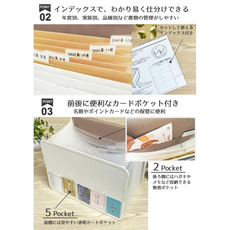 Style plein de Couleur Document Storage Case, Document Stand, A4, 13 Pockets, A4, Document Case, File Box, Storage Box, Document Files, Office, Organization, Document Storage (Beige)