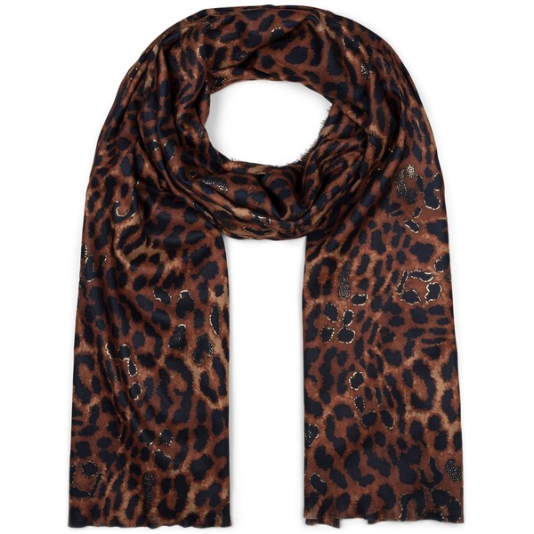 styleBREAKER 01017152 Women's Scarf with Leopard Animal Print Pattern and Metallic Details, Warm Winter Stole Multi-Coloured, Cognac-black