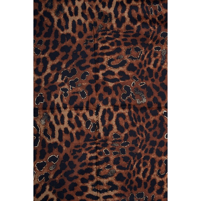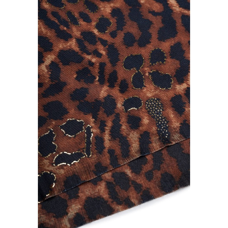 - Soft scarf with short fringes at the ends and multi-coloured leo pattern animal print and golden metallic details