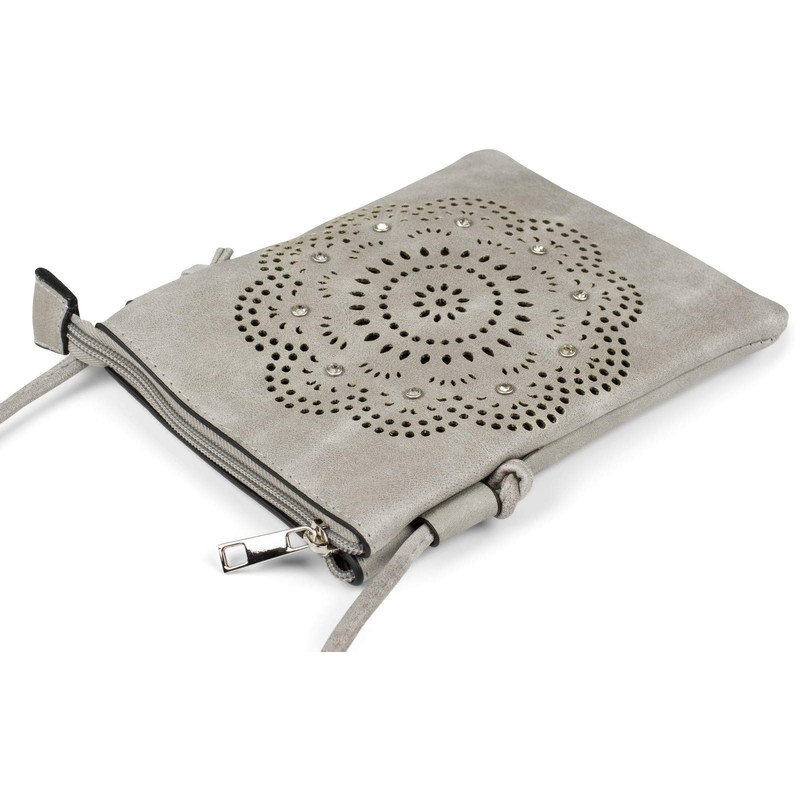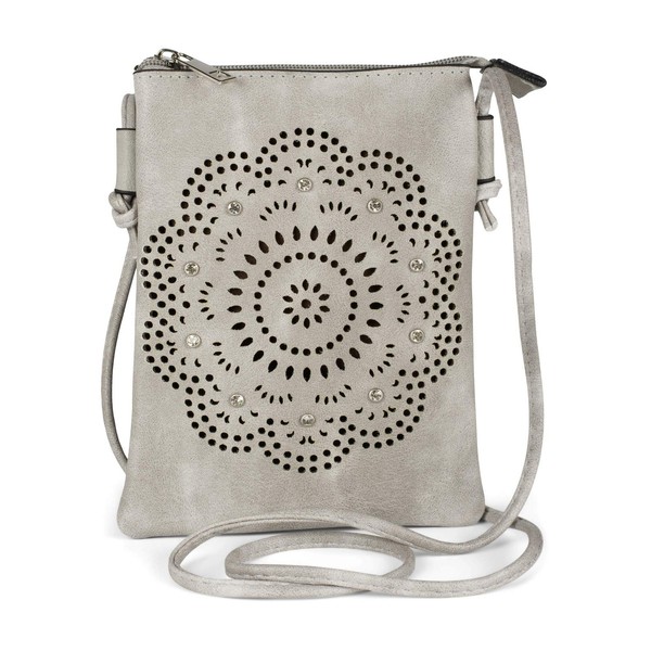 styleBREAKER 02012367 Women's Mini Bag Shoulder Bag with Flowers Laser Cut Cutout Pattern and Rhinestones Shoulder Bag Handbag, lightgrey