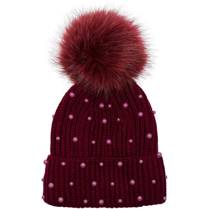styleBREAKER's stylish warm faux fur bobble knitted hat with beads and fake fur bobble.