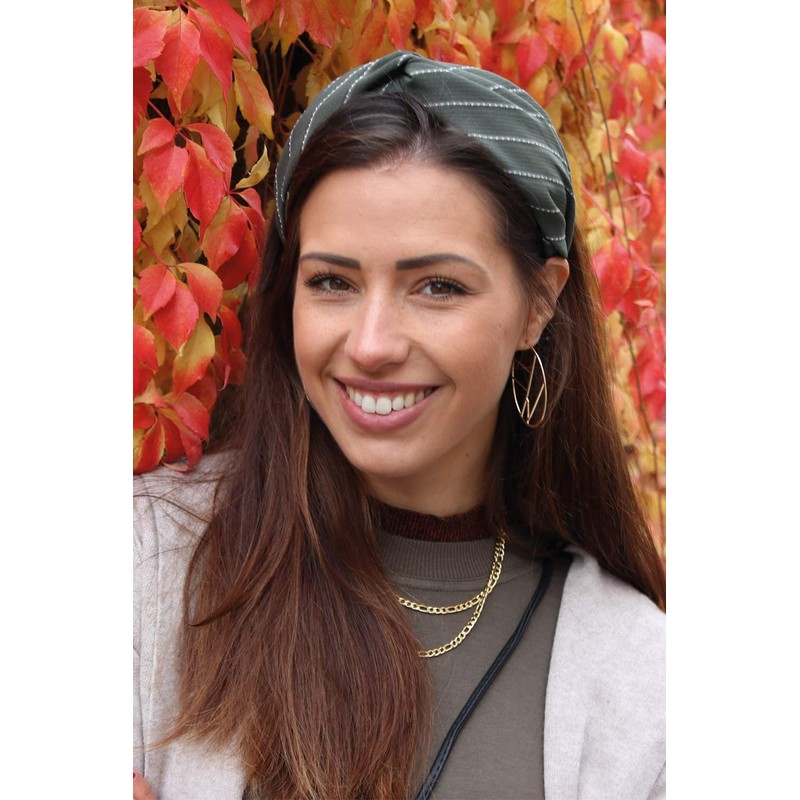 - Plain headband with elegant pin stripe pattern and decorative twist knot in cool retro vintage style