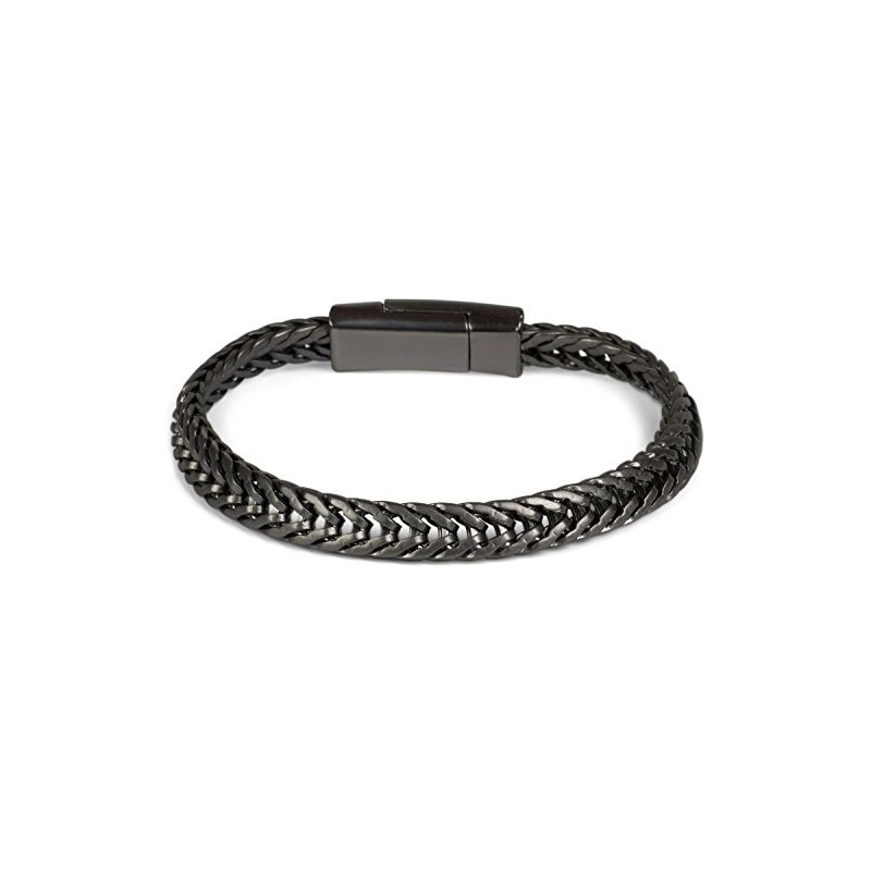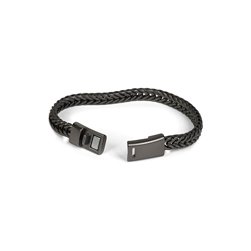 styleBREAKER flaches Zopfketten Armband mit Magnetverschluss, Kette, Schmuck, Unisex 05040131, Farbe:Anthrazit