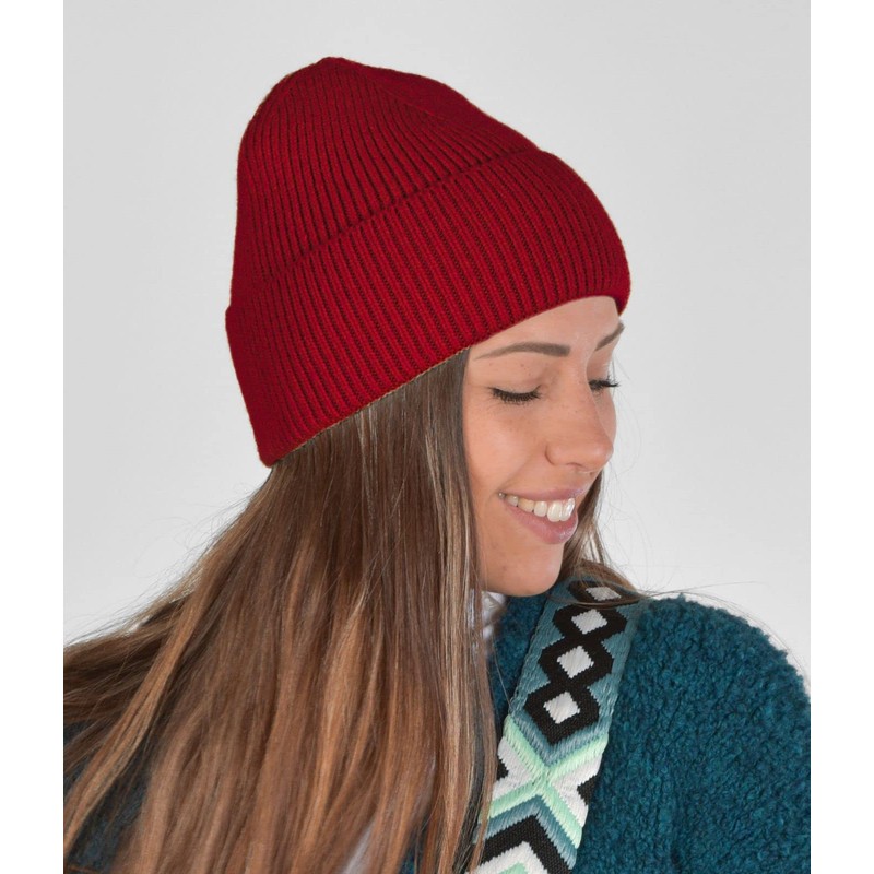 styleBREAKER Unisex Knitted Hat with Ribbed Pattern and Wide Brim, Fine Knit Hat Double Knit, Knitted Beanie 04024190, bordeaux red