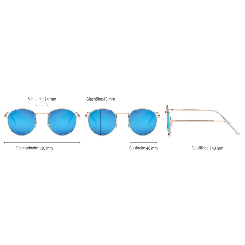 styleBREAKER Unisex Sunglasses Panto Shape with Round Flat Lenses and Metal Frame 09020077 - Frame gold / blue mirrored glass
